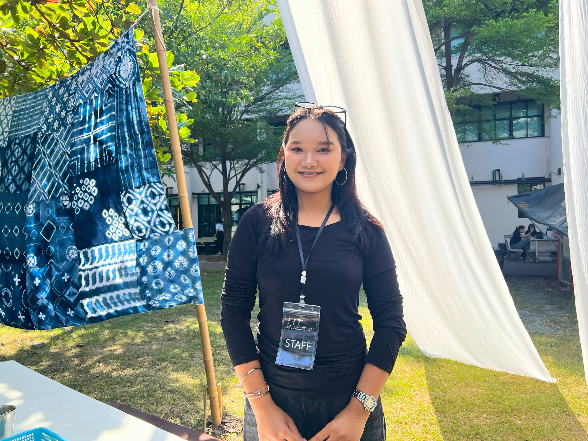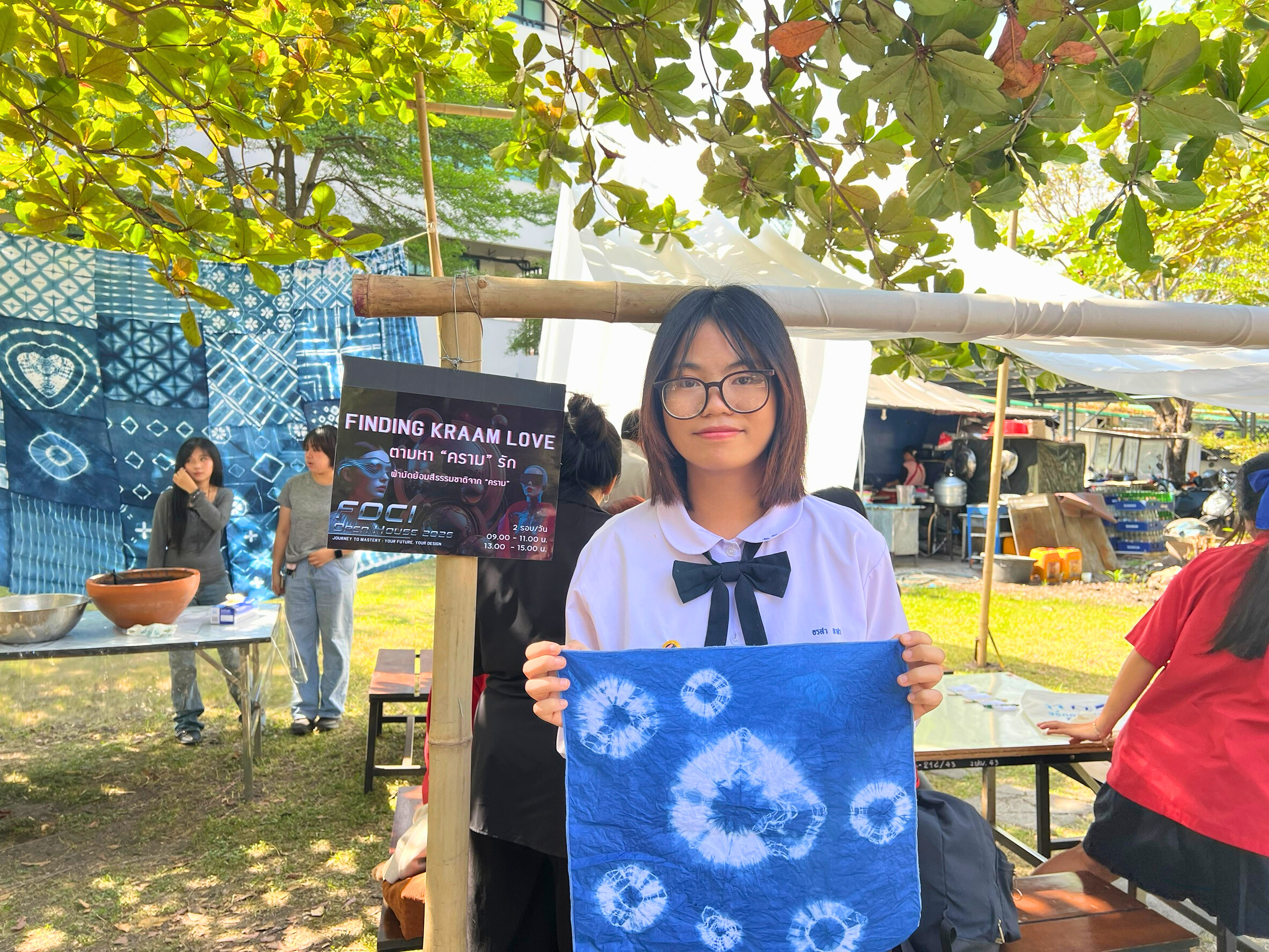 ‘กุ๊กกิ๊ก’ เน้นย้ำว่า กิจกรรมนี้คือการจำลองการเรียนการสอนเบื้องต้น ที่ทำให้นักเรียนได้สัมผัสกับทักษะการปฏิบัติจริงในรายวิชา โดยน้อง ๆ จะได้เรียนรู้ขั้นตอนที่ค่อนละเอียด ตั้งแต่การออกแบบลวดลาย การมาร์กตำแหน่ง การเตรียมผ้า การลงย้อมในน้ำคราม รวมถึงการดูแลเพื่อให้สีติดทนและลวดลายปรากฏชัดเจนบนผืนผ้าจริง ทักษะเหล่านี้เป็นองค์ความรู้สำคัญที่จะได้เรียนรู้อย่างเป็นขั้นเป็นตอน โดยจะเริ่มจากการเรียนรู้พื้นฐานเรื่อง เส้นใยและสีของผ้า ในชั้นปีที่ 1 และจะพัฒนาไปสู่การลงมือปฏิบัติจริงและสร้างสรรค์ผลงานอย่างเต็มรูปแบบในชั้นปีที่ 2 เป็นต้นไป และรู้สึกยินดีอย่างยิ่งที่ได้รับความสนใจจากน้อง ๆ ตลอดทั้งวัน ที่เห็นความสำคัญในศาสตร์ของแฟชั่นและนวัตกรรมเครื่องแต่งกาย และหวังว่าจะเป็นแรงบันดาลใจสำคัญ ให้น้อง ๆ ตัดสินใจเข้ามาเป็นส่วนหนึ่งของการสร้างสรรค์วงการแฟชั่นไทยต่อไปได้