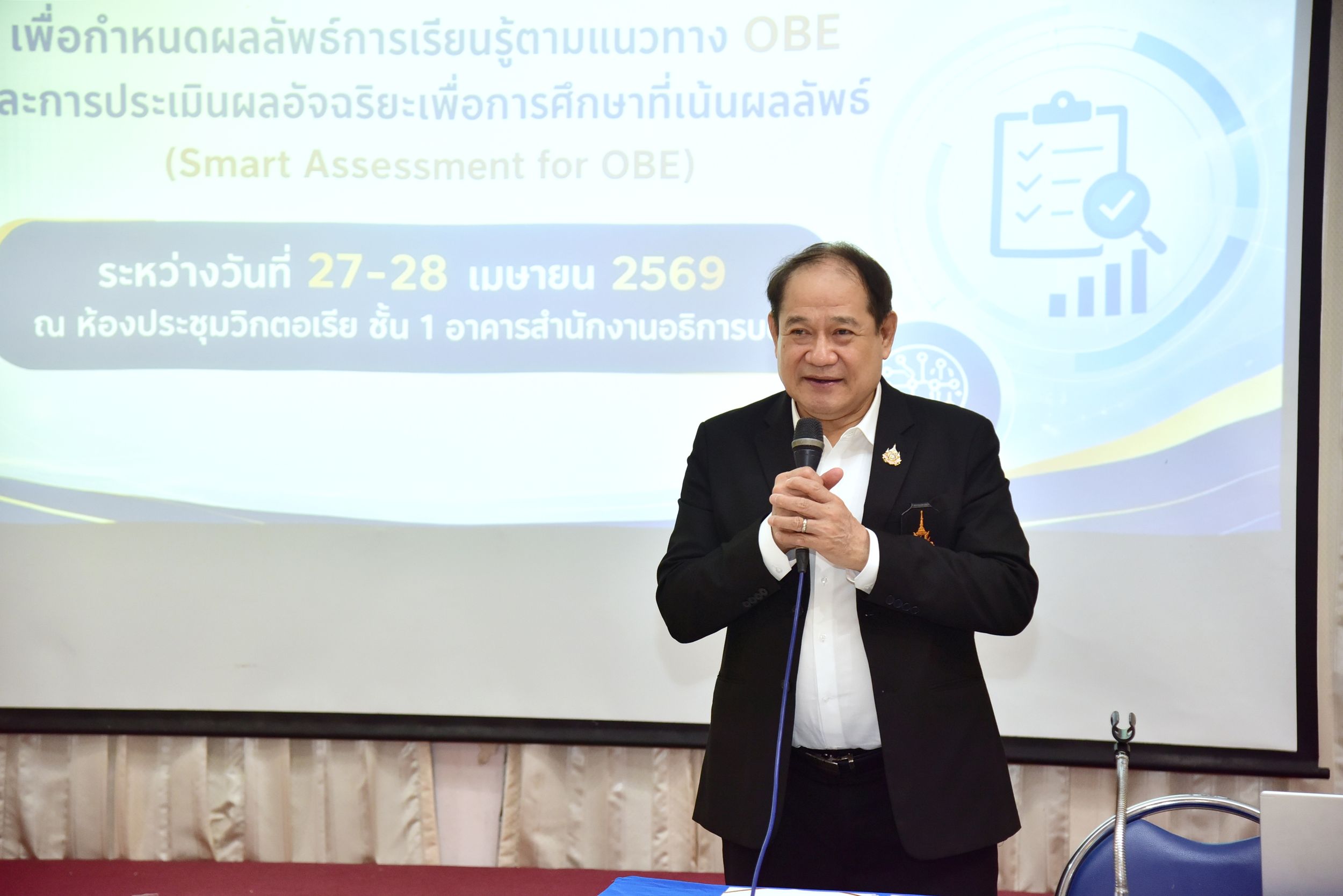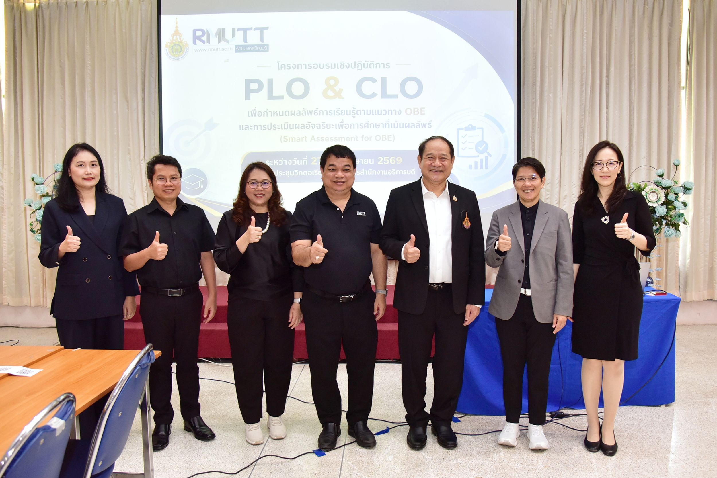 27 เมษายน, 2026รศ.ดร.สมหมาย ผิวสอาด อธิการบดี มหาวิทยาลัยเทคโนโลยีราชมงคลธัญบุรี เป็นประธานในพิธีเปิด “โครงการอบรมเชิงปฏิบัติการ PLO & CLO เพื่อกำหนดผลลัพธ์การเรียนรู้ตามแนวทาง OBE และการประเมินผลอัจฉริยะเพื่อการศึกษาที่เน้นผลลัพธ์ (Smart Assessment for OBE)” ซึ่งจัดโดยสำนักส่งเสริมวิชาการและงานทะเบียน ระหว่างวันที่ 27–28 เมษายน 2569 ณ ห้องวิกตอเรีย สำนักงานอธิการบดี มทร.ธัญบุรี