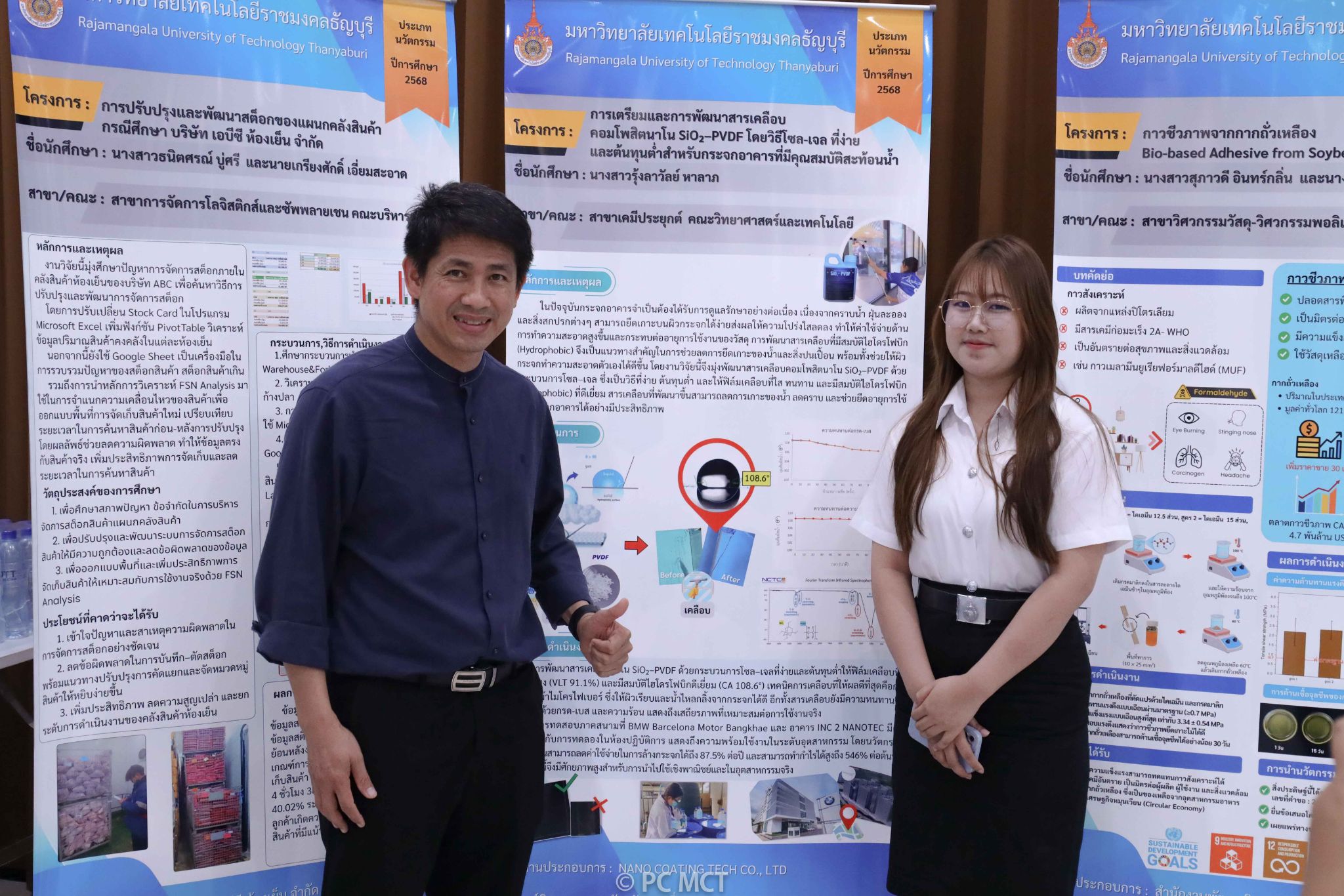 รองศาสตราจารย์ ดร.สมหมาย ผิวสอาด อธิการบดีมหาวิทยาลัยเทคโนโลยีราชมงคลธัญบุรี (มทร.ธัญบุรี) เปิดเผยถึงความสำเร็จในการจัดการเรียนการสอนแบบสหกิจศึกษาเชิงรุกที่มุ่งเน้นให้นักศึกษาลงพื้นที่ปฏิบัติงานจริงร่วมกับสถานประกอบการเพื่อนำปัญหาหน้างานมาสร้างสรรค์นวัตกรรมที่ใช้งานได้จริงในภาคอุตสาหกรรม โดยผลงานที่โดดเด่นและได้รับความสนใจเป็นอย่างมากคือ โครงงานการเตรียมและการพัฒนาสารเคลือบคอมโพสิตนาโน SiO₂–PVDF โดยวิธีโซล-เจล สำหรับกระจกอาคารที่มีคุณสมบัติสะท้อนน้ำ ซึ่งเป็นผลผลิตจากการศึกษาวิจัยของ นางสาวรุ้งลาวัลย์ หาลาภ นักศึกษาสาขาวิชาเคมีประยุกต์ คณะวิทยาศาสตร์และเทคโนโลยี มทร.ธัญบุรี โดยมี รองศาสตราจารย์ ดร.ฉัตรชัย พลเชี่ยว เป็นอาจารย์ที่ปรึกษา (อาจารย์นิเทศ)