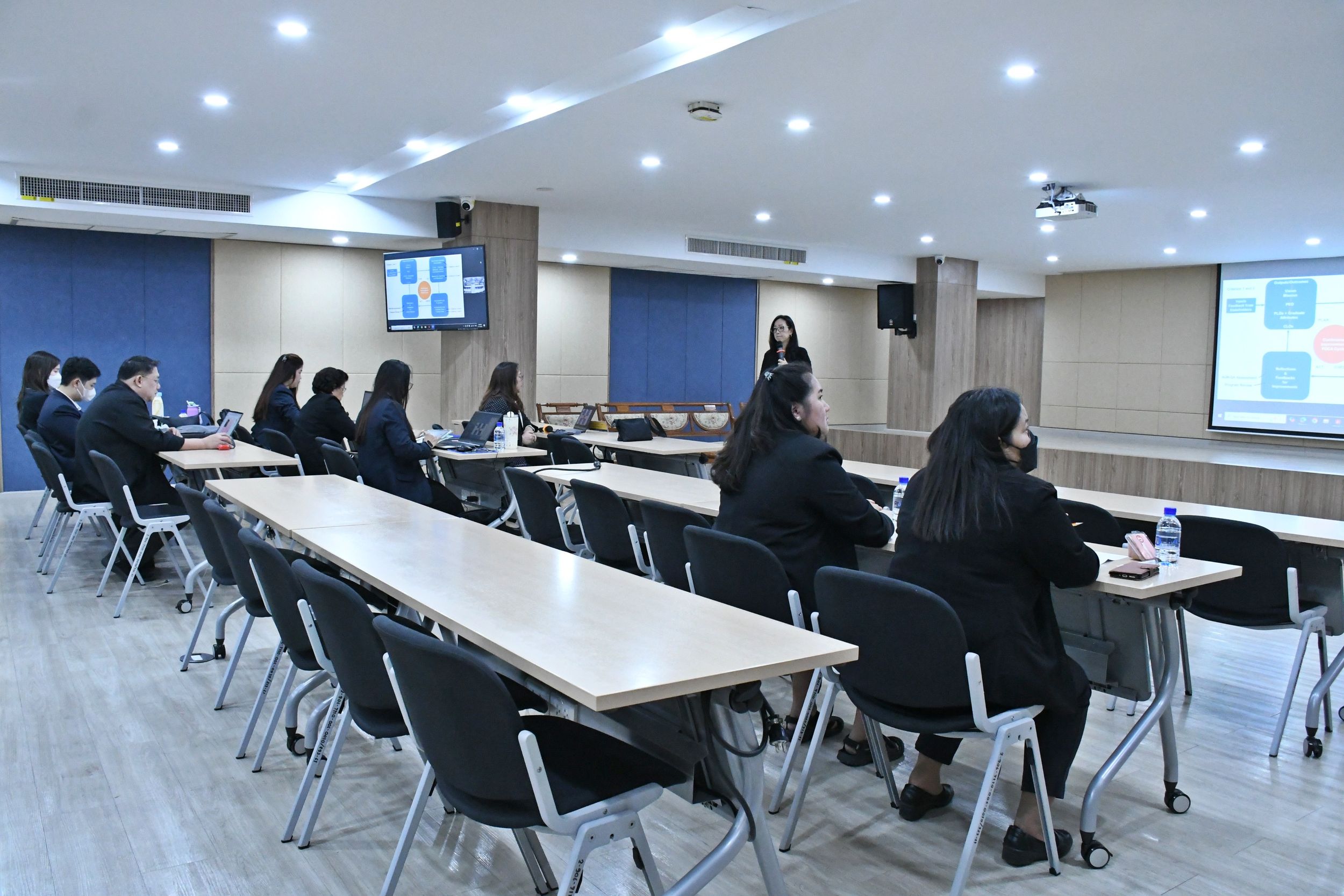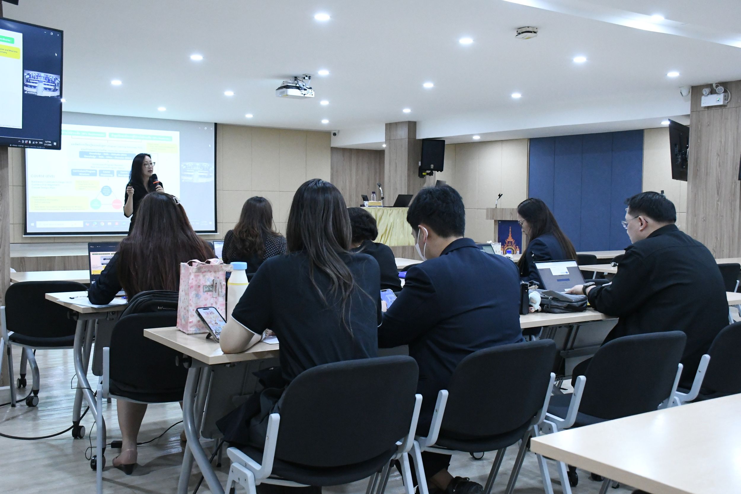 เมื่อวันที่ 11 กุมภาพันธ์ 2569 ณ ห้องประชุมเมธาวี สำนักวิทยบริการและเทคโนโลยีสารสนเทศ มหาวิทยาลัยเทคโนโลยีราชมงคลธัญบุรี ได้จัดประชุมชี้แจงการดำเนินงานหลักสูตรใหม่และหลักสูตรปรับปรุง สำหรับปีการศึกษา 2570–2571 โดยมี ศ.ดร.กฤษณ์ชนม์ ภูมิกิตติพิชญ์ รองอธิการบดี เป็นประธานการประชุม การประชุมครั้งนี้มีวัตถุประสงค์เพื่อสร้างความเข้าใจที่ถูกต้องแก่คณาจารย์และผู้เกี่ยวข้องในการพัฒนาหลักสูตรให้สอดคล้องกับมาตรฐานการศึกษาในระดับชาติและนานาชาติ ตอบสนองต่อความต้องการของตลาดแรงงาน และเชื่อมโยงกับ เป้าหมายการพัฒนาที่ยั่งยืน (SDGs) โดยเฉพาะการยกระดับคุณภาพการศึกษา (SDG 4: Quality Education) นอกจากนี้ยังมุ่งเน้นการบูรณาการ ทักษะดิจิทัลและนวัตกรรม เข้าสู่หลักสูตร เพื่อเสริมสร้างศักยภาพบัณฑิตให้พร้อมรับการเปลี่ยนแปลงของสังคมและเศรษฐกิจในอนาคต ตลอดจนการพัฒนาหลักสูตรที่คำนึงถึง ความเท่าเทียมทางการศึกษา (SDG 4.3) และการส่งเสริมการเรียนรู้ตลอดชีวิต (SDG 4.4)