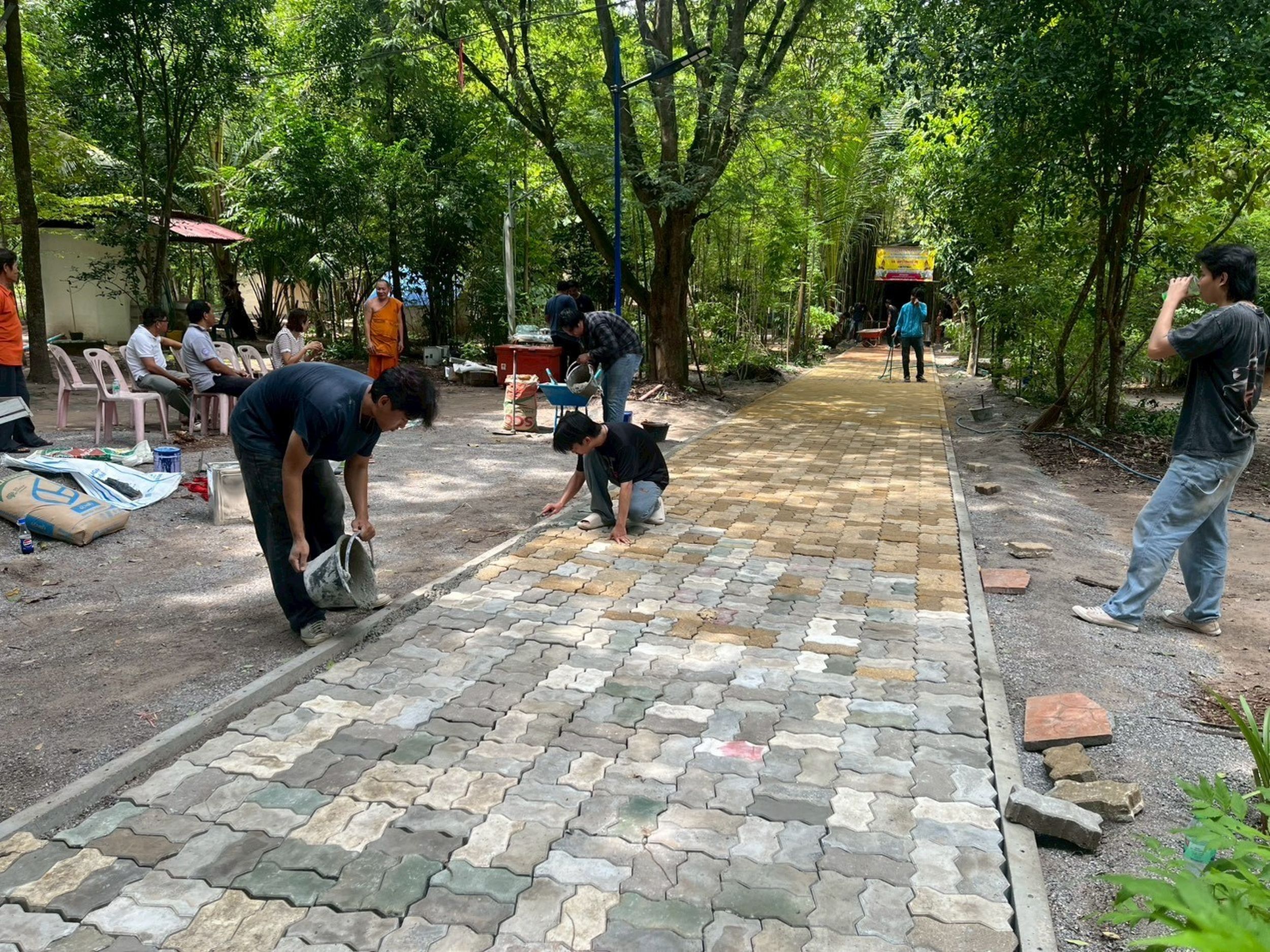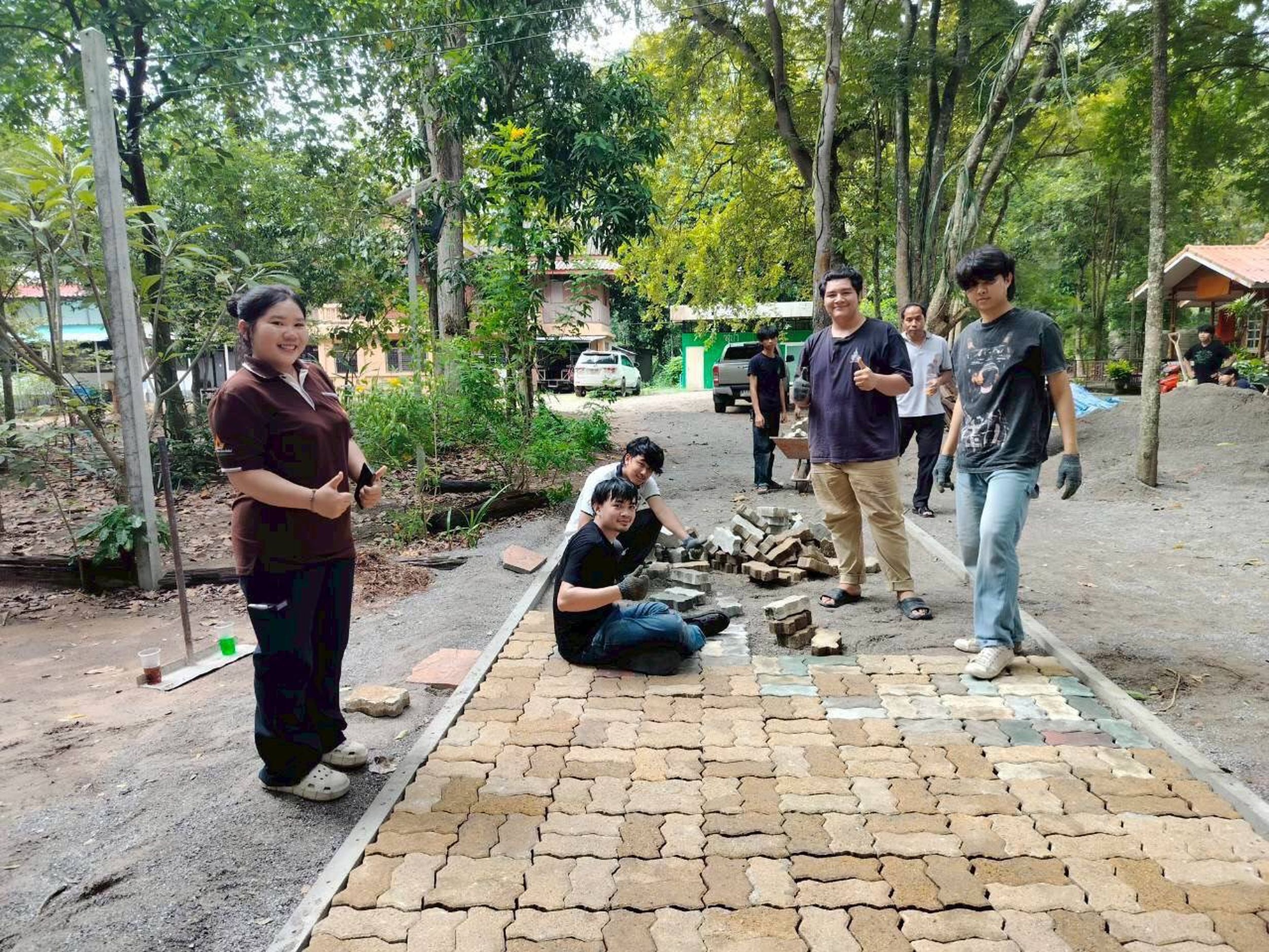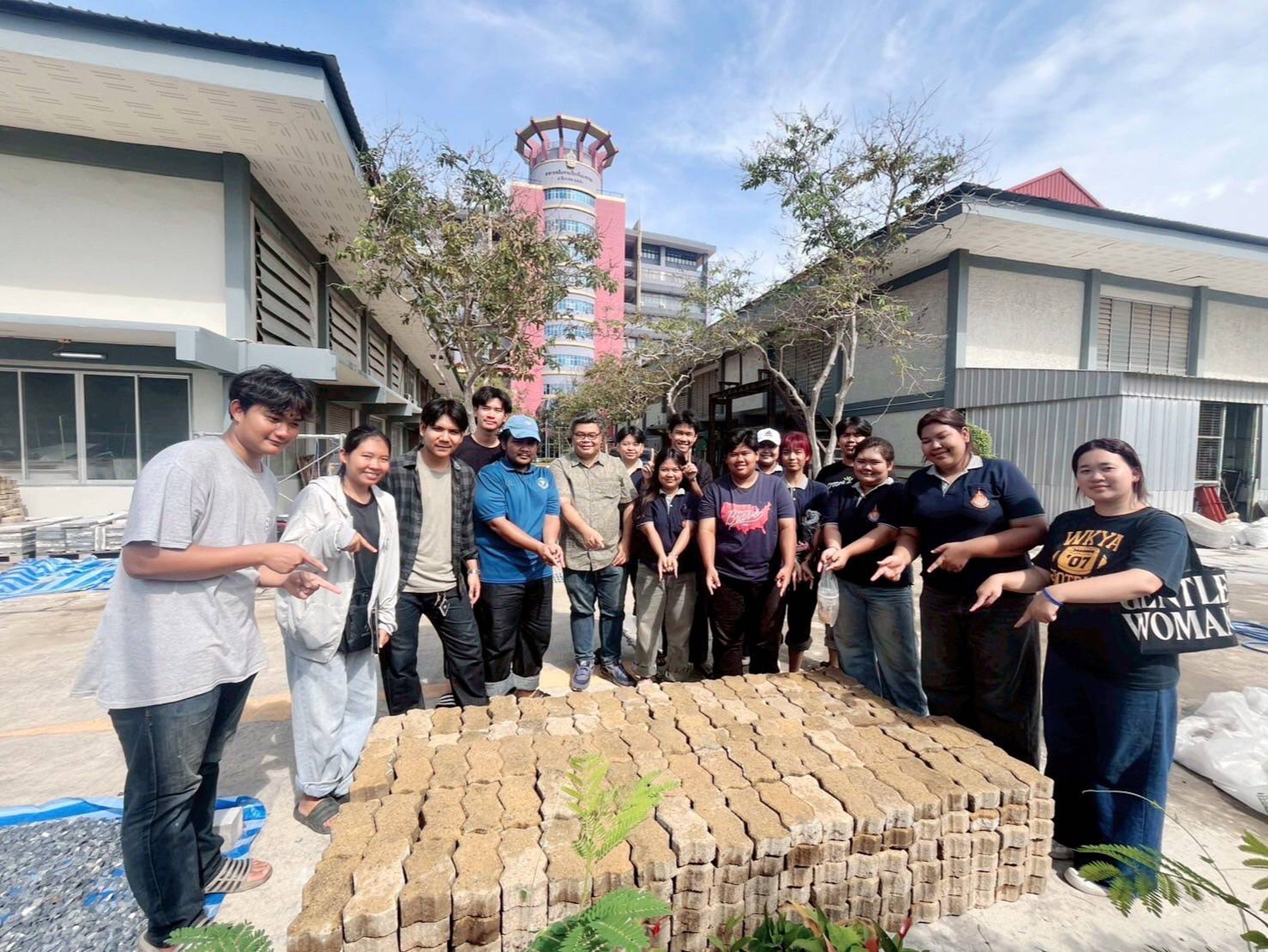 21 ตุลาคม, 2025ภาควิชาวิศวกรรมโยธา คณะวิศวกรรมศาสตร์ มหาวิทยาลัยเทคโนโลยีราชมงคลธัญบุรี ร่วมกับ หน่วยวิจัยวัสดุที่เป็นมิตรต่อสิ่งแวดล้อม และ มหาวิทยาลัยเทคโนโลยีราชมงคลรัตนโกสินทร์ จัดโครงการทำนุบำรุงศิลปวัฒนธรรม “ถนนปูพื้นบุญ หนุนทางธรรม” โดยนำอิฐปูพื้นจากเศษวัสดุเหลือทิ้งไปปูลานปฏิบัติธรรม ณ วัดบ้านกล้วย อำเภอสวนผึ้ง จังหวัดราชบุรี ระหว่างเดือนกันยายนถึงตุลาคม 2568 โครงการนี้มุ่งเน้นการส่งเสริมการใช้ทรัพยากรอย่างมีประสิทธิภาพและการมีส่วนร่วมของเยาวชนในการพัฒนาชุมชน โดยนักศึกษา อาจารย์ และบุคลากรจากภาควิชาวิศวกรรมโยธา มทร.ธัญบุรี ได้ร่วมกันผลิตอิฐปูพื้นตัวหนอนจำนวน 2,400 ก้อน จากเศษวัสดุก่อสร้างเหลือใช้ เช่น เศษคอนกรีตและวัสดุอิฐ เพื่อส่งต่อให้ มทร.รัตนโกสินทร์ ดำเนินการปูพื้นลานวัดให้เป็นพื้นที่ปฏิบัติธรรมและใช้งานเอนกประสงค์สำหรับพระภิกษุและชาวบ้าน