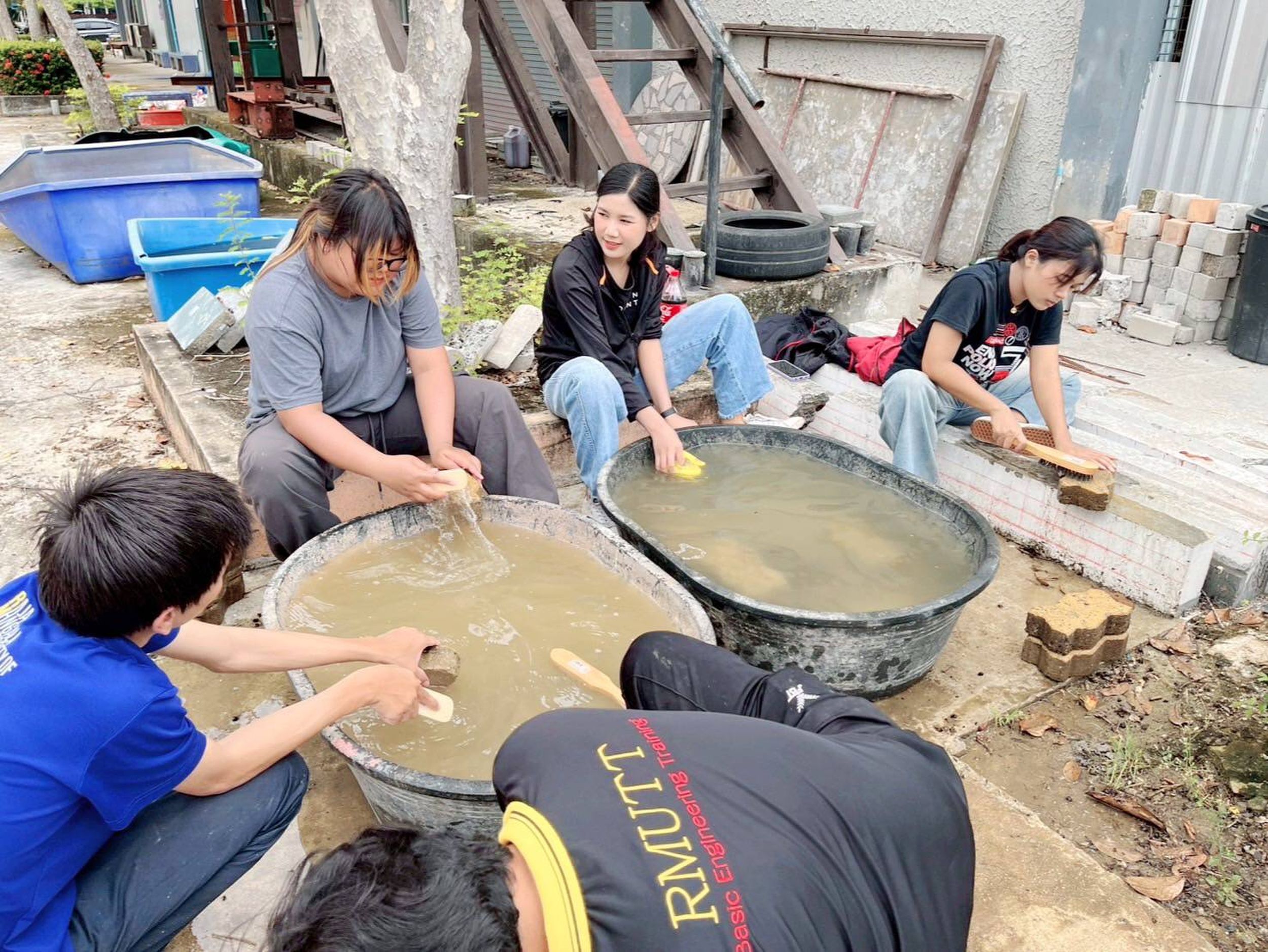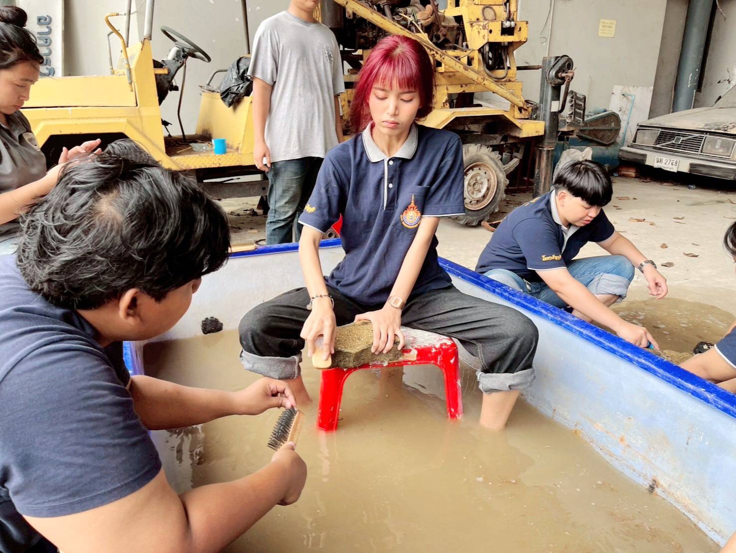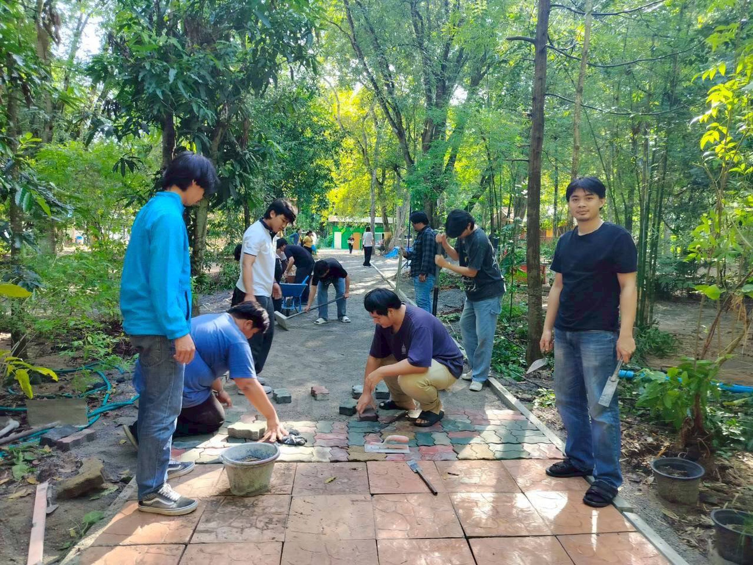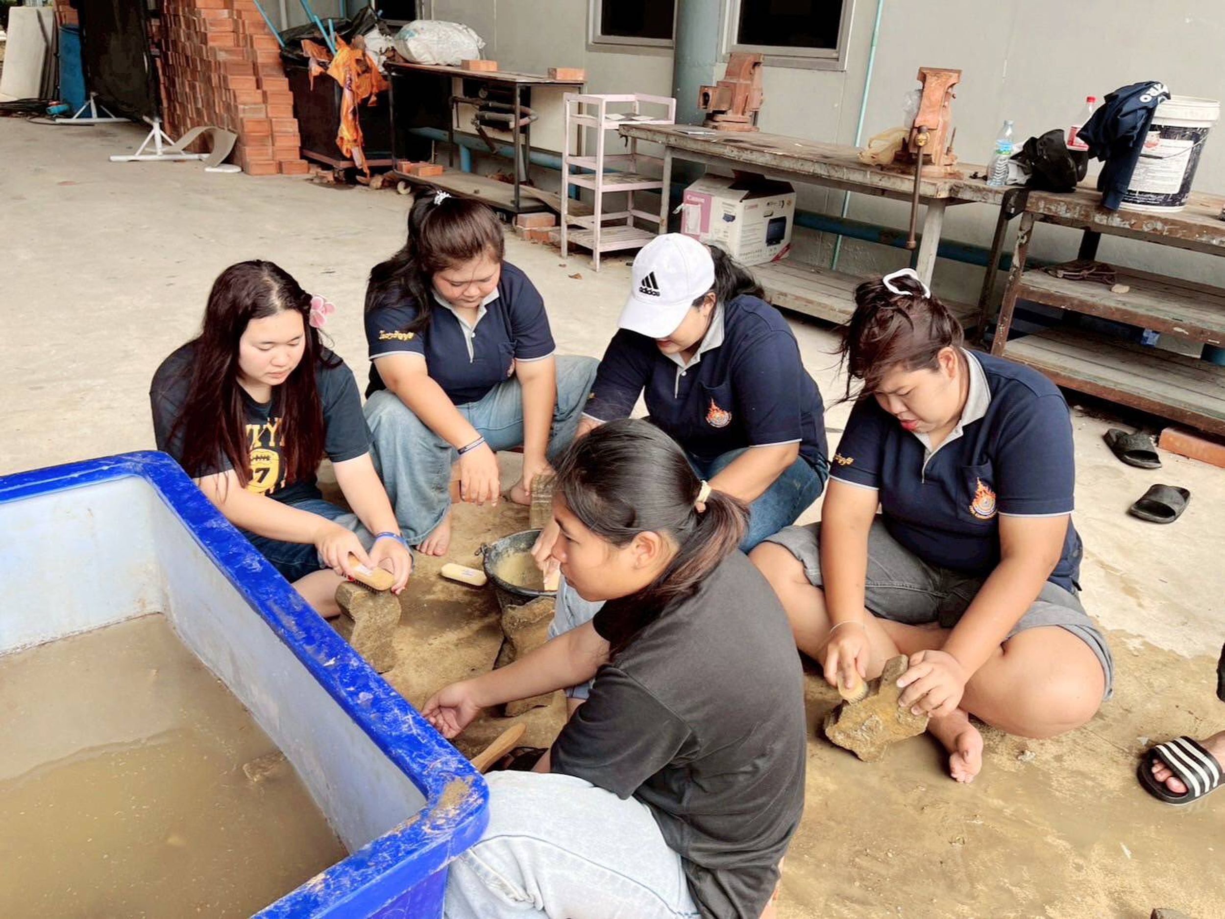 21 ตุลาคม, 2025ภาควิชาวิศวกรรมโยธา คณะวิศวกรรมศาสตร์ มหาวิทยาลัยเทคโนโลยีราชมงคลธัญบุรี ร่วมกับ หน่วยวิจัยวัสดุที่เป็นมิตรต่อสิ่งแวดล้อม และ มหาวิทยาลัยเทคโนโลยีราชมงคลรัตนโกสินทร์ จัดโครงการทำนุบำรุงศิลปวัฒนธรรม “ถนนปูพื้นบุญ หนุนทางธรรม” โดยนำอิฐปูพื้นจากเศษวัสดุเหลือทิ้งไปปูลานปฏิบัติธรรม ณ วัดบ้านกล้วย อำเภอสวนผึ้ง จังหวัดราชบุรี ระหว่างเดือนกันยายนถึงตุลาคม 2568 โครงการนี้มุ่งเน้นการส่งเสริมการใช้ทรัพยากรอย่างมีประสิทธิภาพและการมีส่วนร่วมของเยาวชนในการพัฒนาชุมชน โดยนักศึกษา อาจารย์ และบุคลากรจากภาควิชาวิศวกรรมโยธา มทร.ธัญบุรี ได้ร่วมกันผลิตอิฐปูพื้นตัวหนอนจำนวน 2,400 ก้อน จากเศษวัสดุก่อสร้างเหลือใช้ เช่น เศษคอนกรีตและวัสดุอิฐ เพื่อส่งต่อให้ มทร.รัตนโกสินทร์ ดำเนินการปูพื้นลานวัดให้เป็นพื้นที่ปฏิบัติธรรมและใช้งานเอนกประสงค์สำหรับพระภิกษุและชาวบ้าน