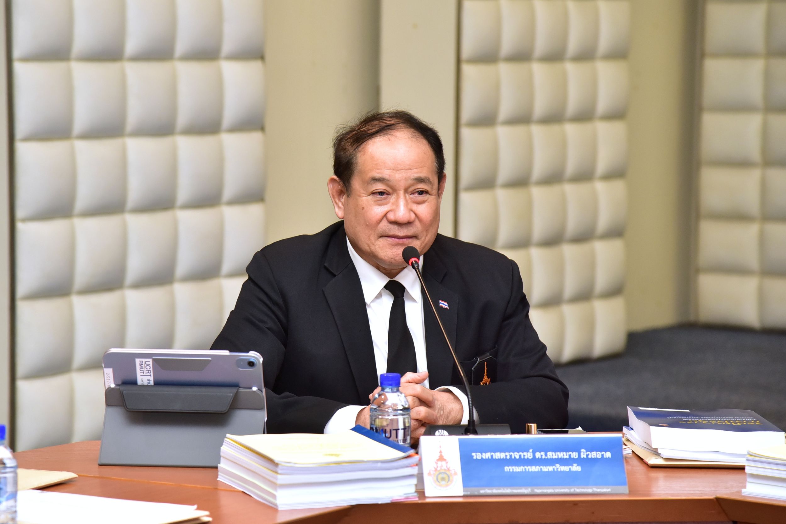 27 พฤศจิกายน, 2025วันพุธที่ 26 พฤศจิกายน 2568 ณ ห้องประชุมมังคลอุบล มหาวิทยาลัยเทคโนโลยีราชมงคลธัญบุรี (มทร.ธัญบุรี) และผ่านระบบออนไลน์ พลเอก ธงชัย เกื้อสกุล นายกสภามหาวิทยาลัย เป็นประธานในการประชุมสภามหาวิทยาลัย ครั้งที่ 11/2568 เพื่อร่วมกันขับเคลื่อนนโยบายในการพัฒนามหาวิทยาลัยสู่ความเป็นเลิศด้านการศึกษา นวัตกรรม และความยั่งยืน พร้อมมอบช่อดอกไม้แสดงความยินดีกับทีมนักวิจัย ที่ได้รับรางวัลจากการประกวดผลงานวิจัยและนวัตกรรม ในเวที The International Trade Fair-Ideas, Inventions and New Products” (iENA 2025) เมืองนูเรมเบิร์ก สหพันธ์สาธารณรัฐเยอรมนี